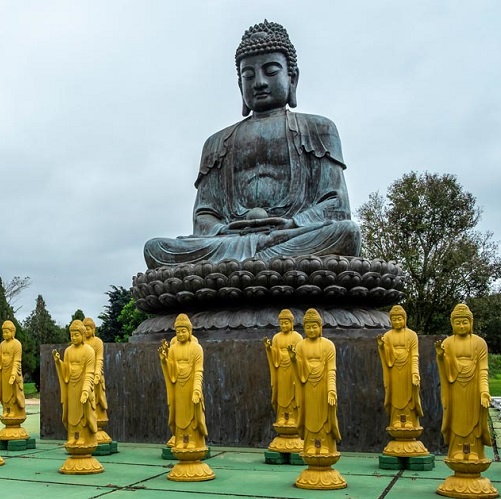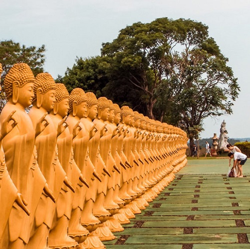 Serene Buddhist temple with more than 120 statues, spaces for reflection and panoramic views of the city.