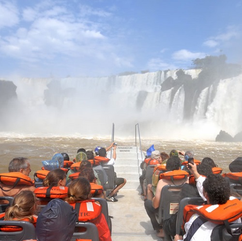 La Gran Aventura comienza dentro del Parque Nacional Iguazú (lado argentino) y el punto de partida es el Centro de Visitantes. Una vez ahí, subirás a una camioneta 4×4 que te adentrará en las profundidades de la selva misionera a lo largo de 5 kilómetros, por los senderos Yacaratiá y Puerto Macuco. El tour continuará con un descenso de 100 metros para embarcar en el gomón semi-rigido que te llevará a recorrer 6 kilómetros del Rio Iguazú; acercándote a los pies de la majestuosa Garganta del Diablo.